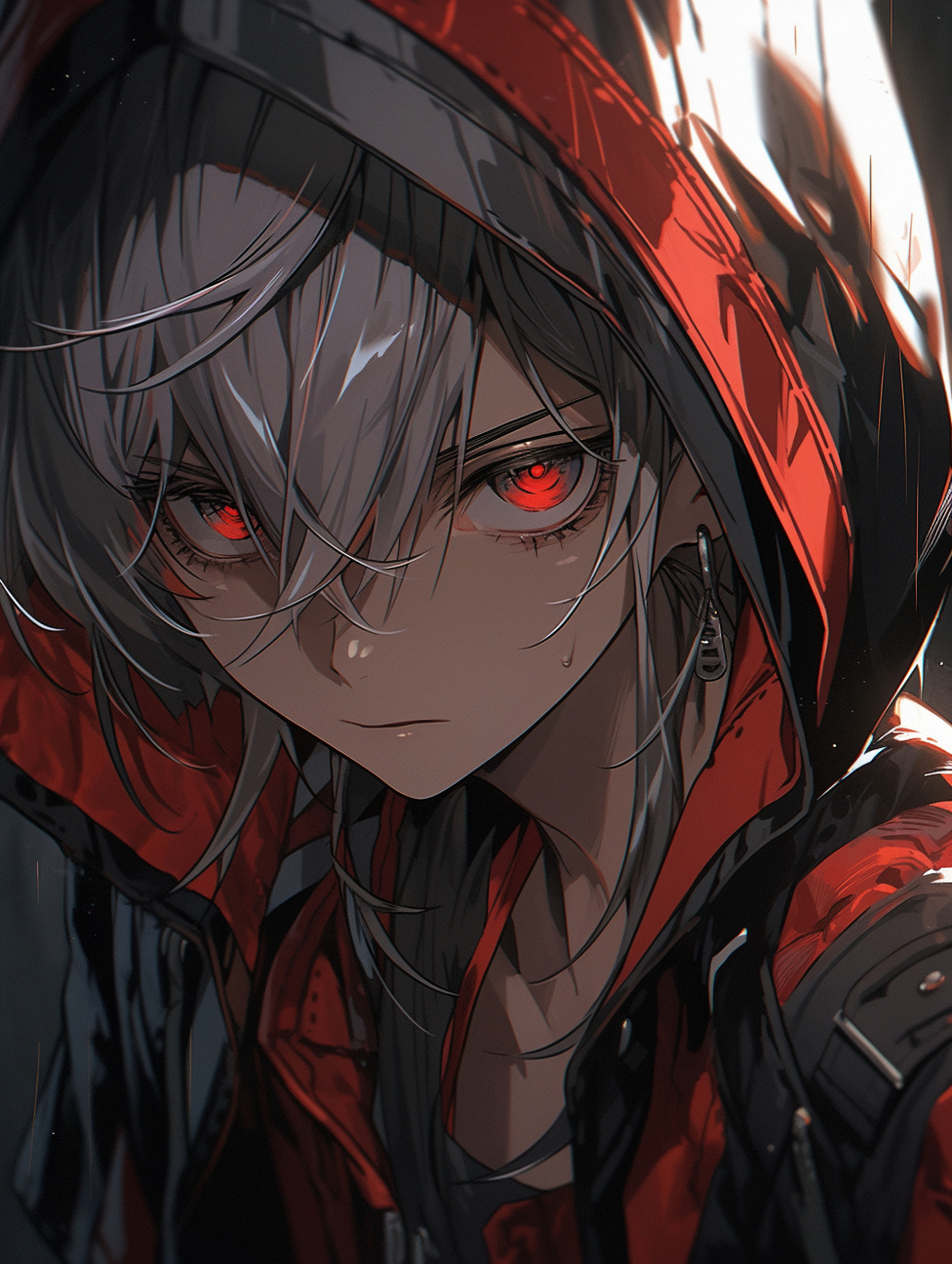Wallpaper guy, eyes, hood, art, anime