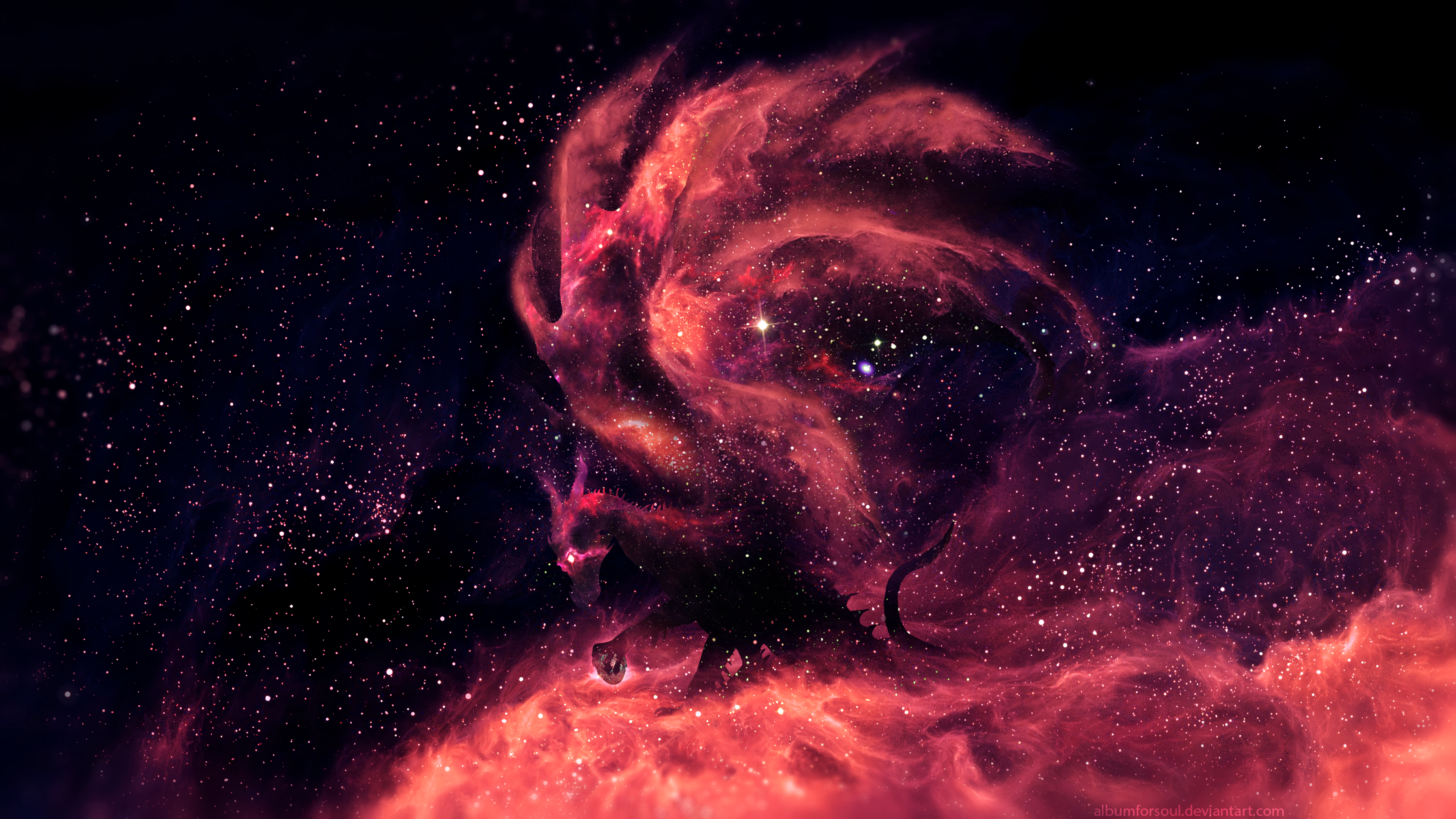 Wallpaper dragon, starry sky, silhouette, fantastic